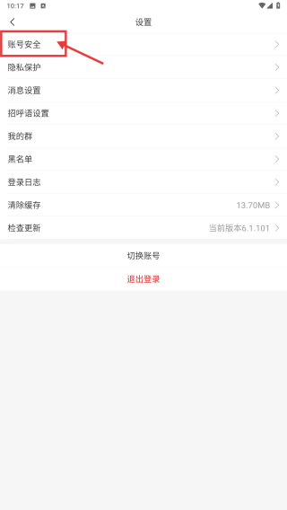 3、在设置页面,点击账号安全选项,进入账号安全页面。