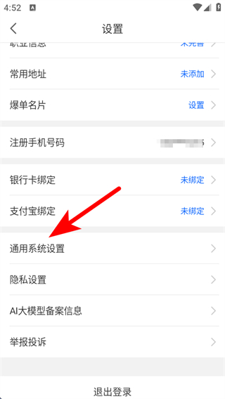 3、在设置页面,找到并点击通用系统设置,进入通用系统设置页面。