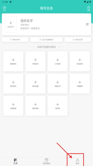 1、打开信息填写类应用,点击底部我的选项,进入个人中心页面。