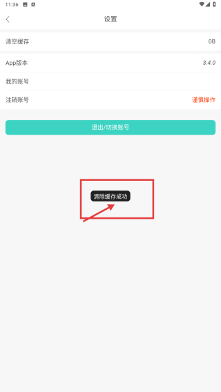 4、清理完成后,界面会提示清除缓存成功,完成APP缓存的清理。