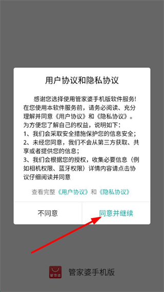 1、在用户协议和隐私协议弹窗中,点击同意并继续,进入登录方式选择页面。