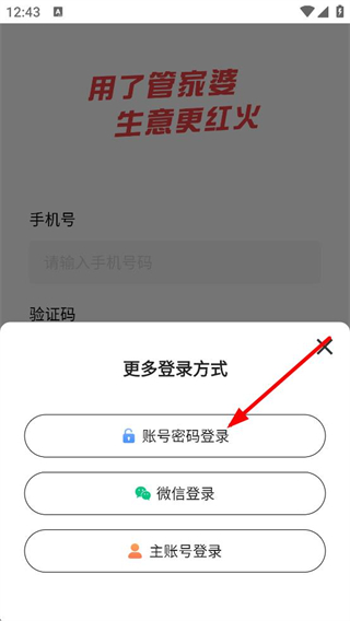 2、在登录方式选择页面,点击账号密码登录,进入账号密码登录页面。