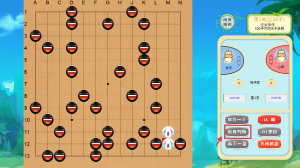 匹配机制高效,操作流程简单,少儿可快速开启对弈,无需复杂步骤,轻松享受与同伴或AI的围棋对战乐趣。