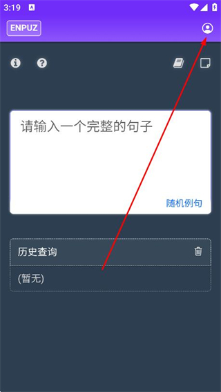 1、打开enpuz app,找到并点击右上角的头像图标。