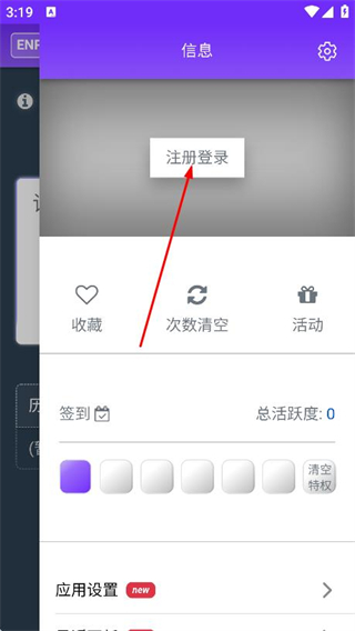2、在弹出的信息页面中,找到并点击注册登录选项。