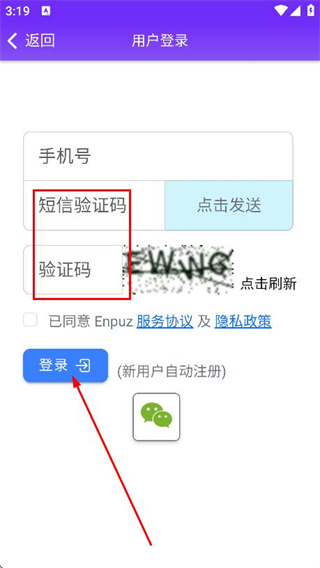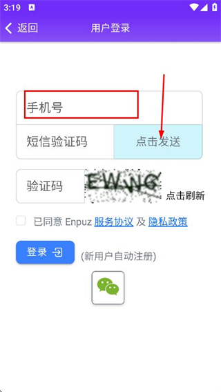 3、进入用户登录页面后,输入手机号,点击发送。