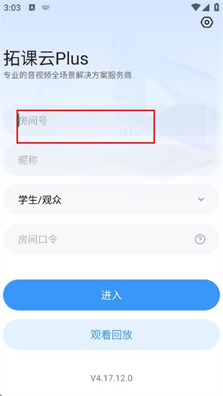2、进入课堂进入页面后,点击输入框,输入房间号。