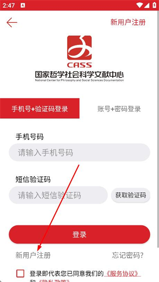 2、在登录页面,找到并点击新用户注册选项。