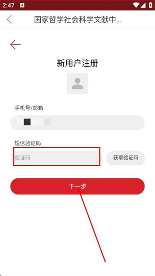 4、输入验证码,点击下一步,根据提示完成注册。