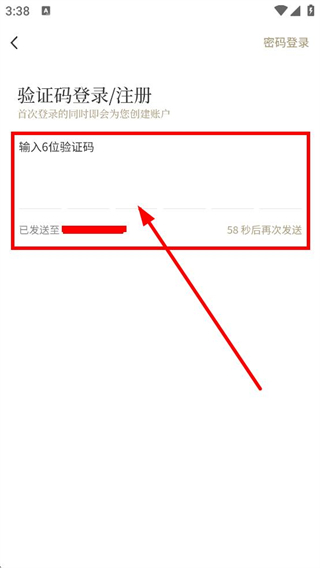 4、在验证码填写页面,输入收到的6位验证码,完成账号登录。
