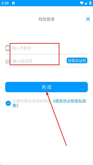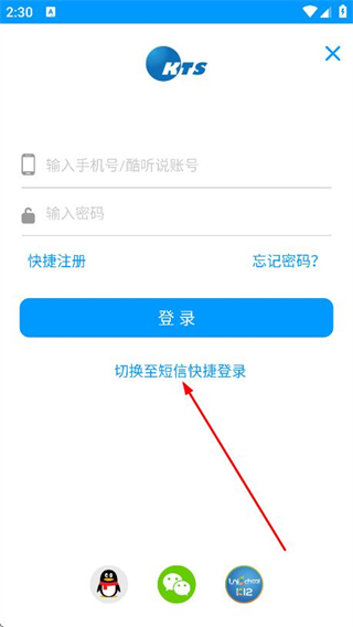 3、进入登录页面后,点击切换至短信快捷登录选项。