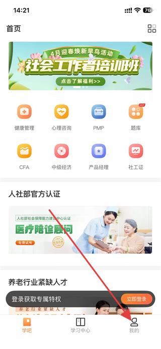 1、打开登塔学苑app,点击底部导航栏我的选项。