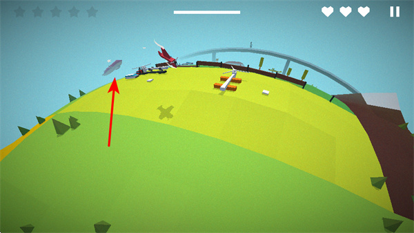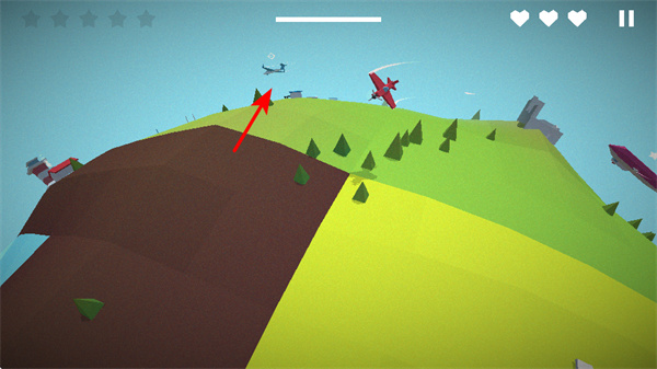 3、飞行时留意空中的道具或敌机,紧跟红色箭头指引的目标移动,这是确保任务推进的关键步骤,顺利完成关卡要求。