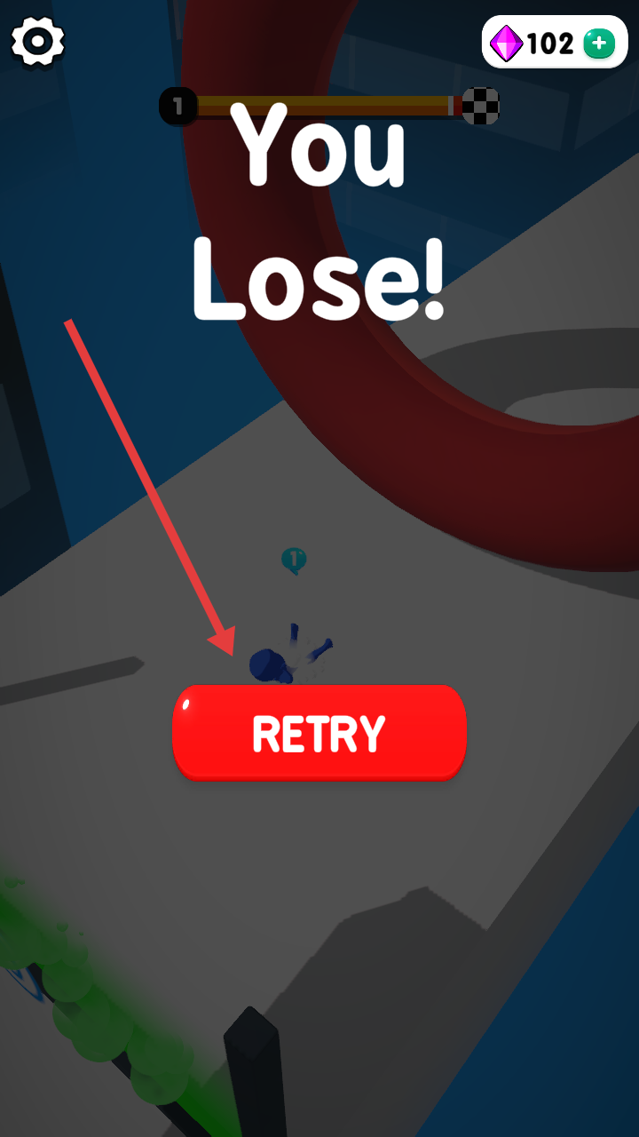 3、失败出现You Lose后,点击RETRY重玩,优化操作别掉落,成功到终点黑白格旗处。