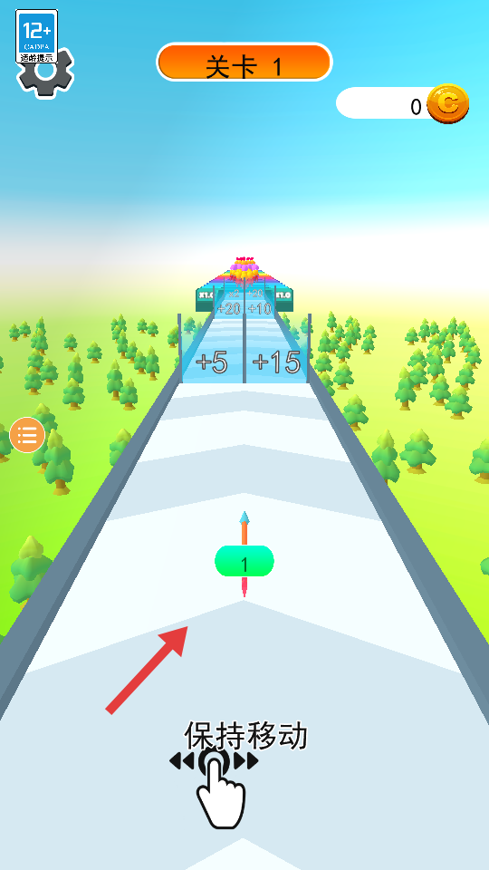 1、进入游戏后,在初始赛道熟悉飞剑操控方式,通过滑动屏幕控制飞剑左右移动,躲避首个障碍物,同时尝试点击屏幕发射箭矢击中前方基础敌人。