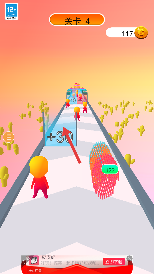 2、遇到赛道中的关门时,观察关门标识,优先选择标注“增加箭矢”的关门穿过,获取箭矢数量提升,为后续射击更多敌人做准备。