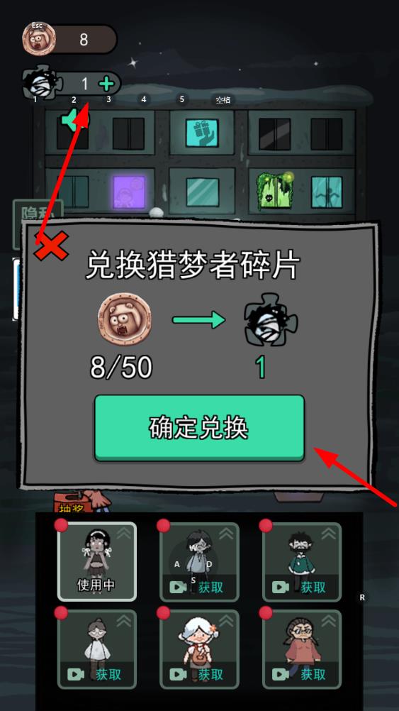 3、当拥有足够的猎梦者碎片达到,点击猎梦者头像图标兑换猎梦者碎片,完成兑换后即可开启猎梦者模式,在下次游戏中就能选择成为猎梦者。