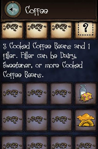需要3个咖啡豆加一个甜品(黄油、蜂蜜、咖啡豆)
