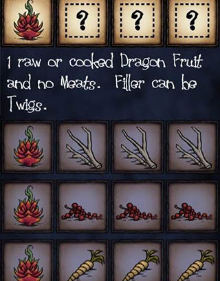 1火龙果3填充物,可以是树枝不可以是肉,这是非常好的食谱,搭配自由,保质期长,属性高,有一定的升温效果