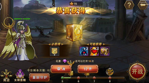 7、战斗胜利后根据战斗结果可以获得星星奖励,积攒的星星奖励可以用来兑换女神的恩赐。