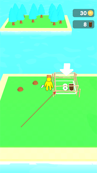 3、将木材运到指定区域,获取金币和木材资源,提升资源储备。