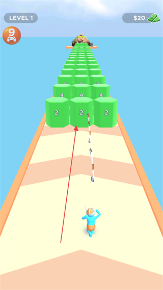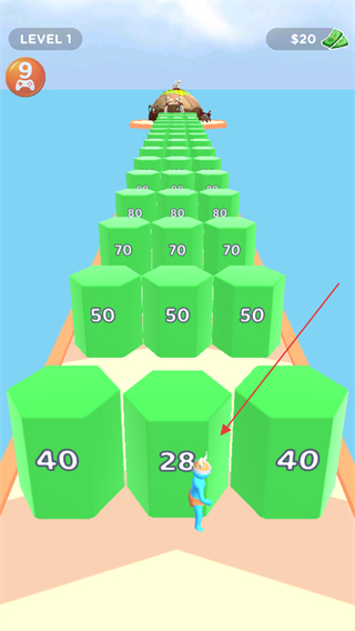 跑酷过程中可吸纳更多火柴人壮大队伍,人群规模影响通关能力,规模越大,应对关卡障碍与敌人的优势越明显。