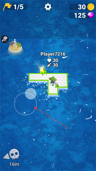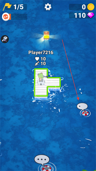 3、操控木筏移动,扩大领地,积累金币和钻石,升级武器与木筏。