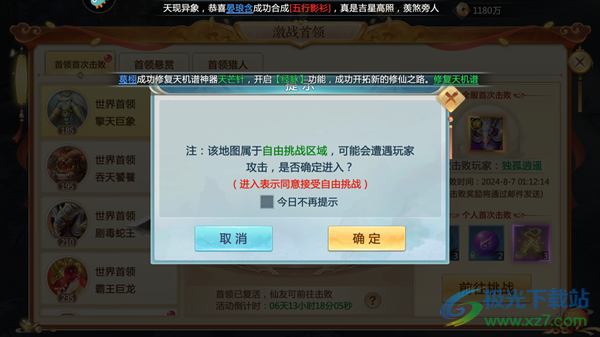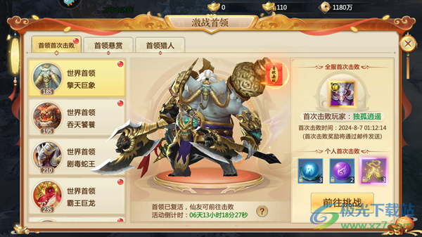 2、选择想要挑战的首领,点击右下角的前往挑战。