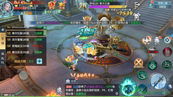 2、【神兽岛】解锁全新区域——第六层角色等级达到飞升250级且开服40天开启,入口在【主界面】- 【远征】- 【异兽岛】神兽岛拓展到第六层,全新的第六层副本,全新的入圣装备等你来爆,活动的首领都是行走的宝藏,看看谁是掉落极品入圣装备的那位幸运儿。