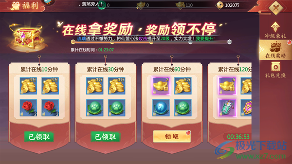 3、在线福利,每日游戏在线时长达标即可领取奖励。
