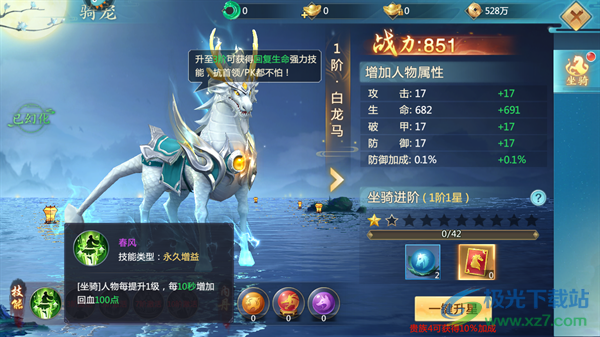 1、春风,技能类型:永久增益,人物每提升1级,每10秒增加回血100点。