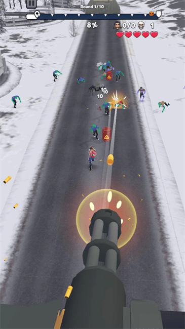4、精准射击目标:挑战中需关注丧尸行动轨迹,找到精准射击方向,有效击退丧尸,保护幸存者。