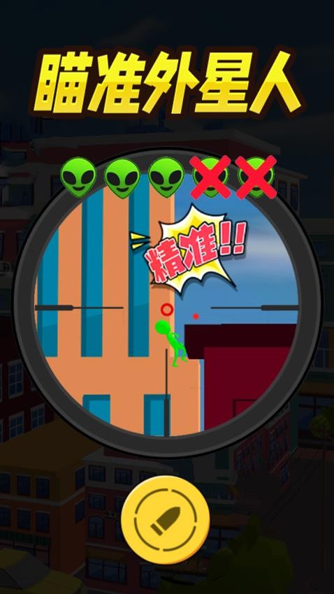 一起狙击外星人是一款极具趣味的动作射击游戏。在游戏里,城市遭外星人入侵,玩家化身为勇敢的狙击手,需在城市中找出这些外星人,并用狙击枪将其消灭,完成任务即可通关。过程中会遇到各种阻碍,同时找到特定问题还能获取重要线索,合理选择对抗方式,就能争取更多奖励,解决各种状况。