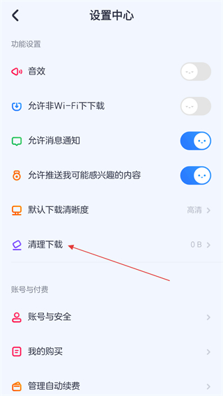 2、进入设置中心的界面内,用户需向下拉动点击清理下载的按钮。