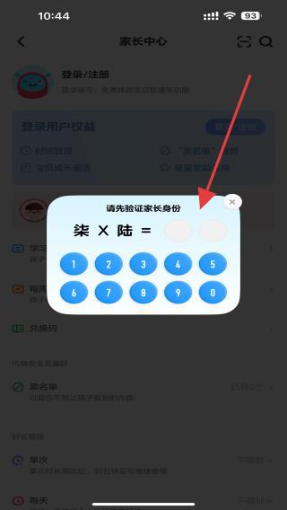 2、点击后,会弹出验证家长身份的信息,输入相对应的答案即可。