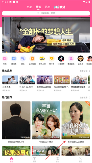 1、打开韩小圈的应用,进入时点击要播放的电视剧内容。
