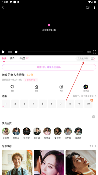 2、进入电视剧播放的页面内,点击发弹幕的功能按钮。
