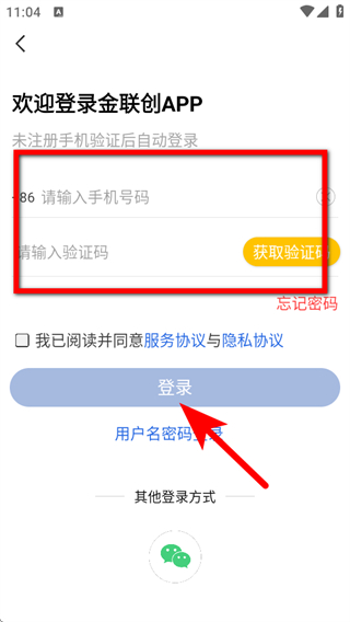4、输入手机号码和验证码,勾选同意后,点击登录按钮,即可完成注册操作。