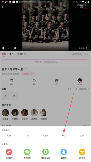 3、在下方弹出的菜单栏中,在倍速播放下点击倍速的速度。