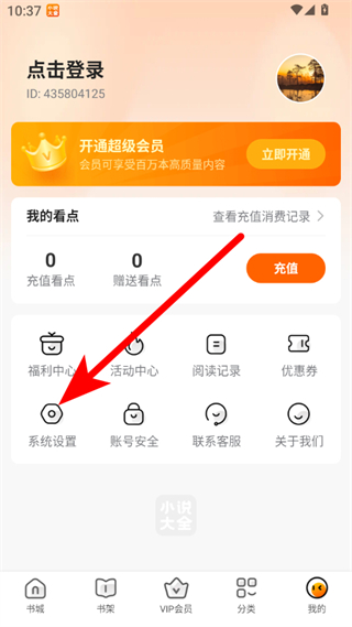 1、在小说大全书城页面,点击右下角我的选项,进入个人中心界面。