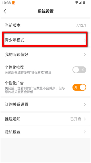 3、在系统设置页面,点击青少年模式选项,进入青少年模式说明界面。