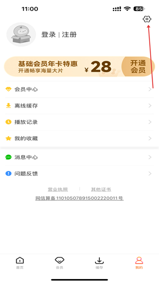 2、进入个人中心的界面内,点击右上角设置的功能按钮。