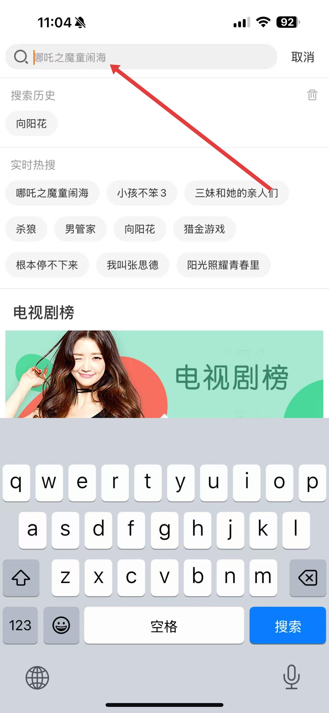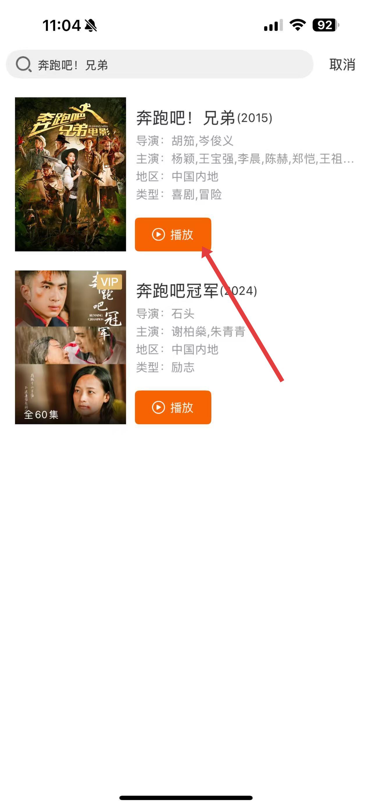 2、在搜索框中输入想要查找的电视节目名称,比如奔跑吧!兄弟,输入完成后点击键盘上的搜索按钮。