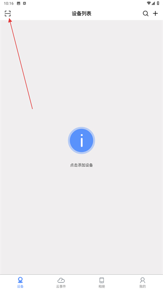 1、启动巨峰眼监控的APP,进入首页内点击左上角扫码的图标。