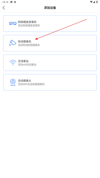 3、在选择设备的页面内,选择并点击有线摄像机即可完成。