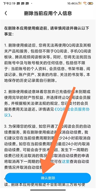 4、点击确认删除按钮,完成相关操作后,重新进入QQ阅读,按照提示流程即可完成账号注册操作。