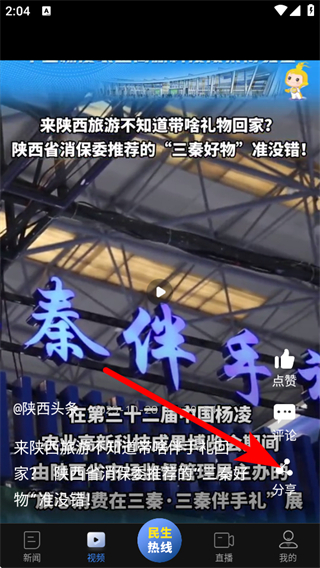1、在陕西头条app首页,点击底部视频选项,进入视频页面。
