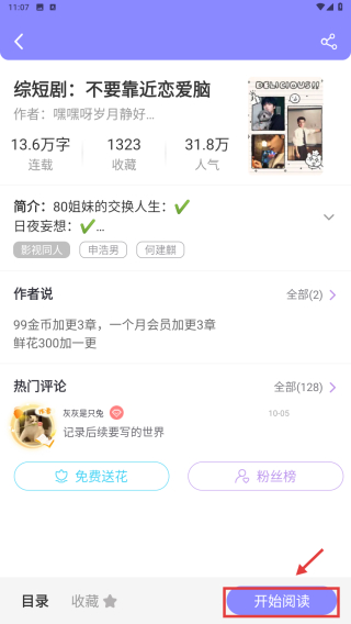 3、在小说详情页,点击开始阅读按钮,进入小说阅读界面。