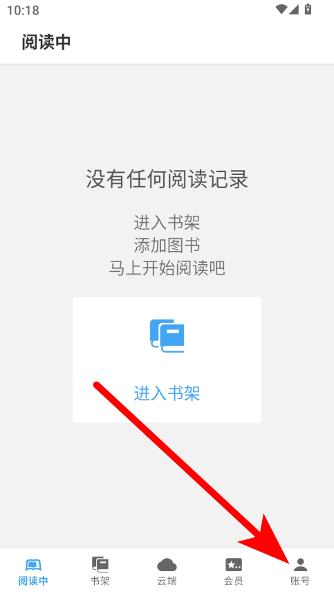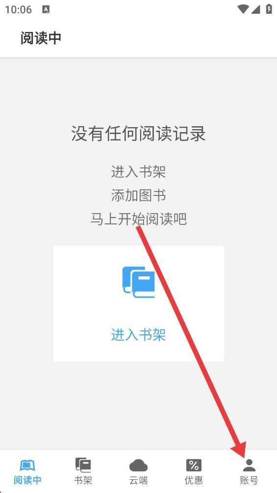 1、在阅读类APP阅读中页面,点击右下角账号选项,进入账号页面。