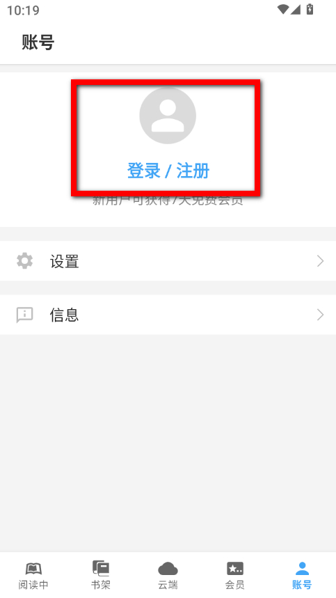 1、打开Neat Reader,点击底部导航栏最右侧的账号选项。